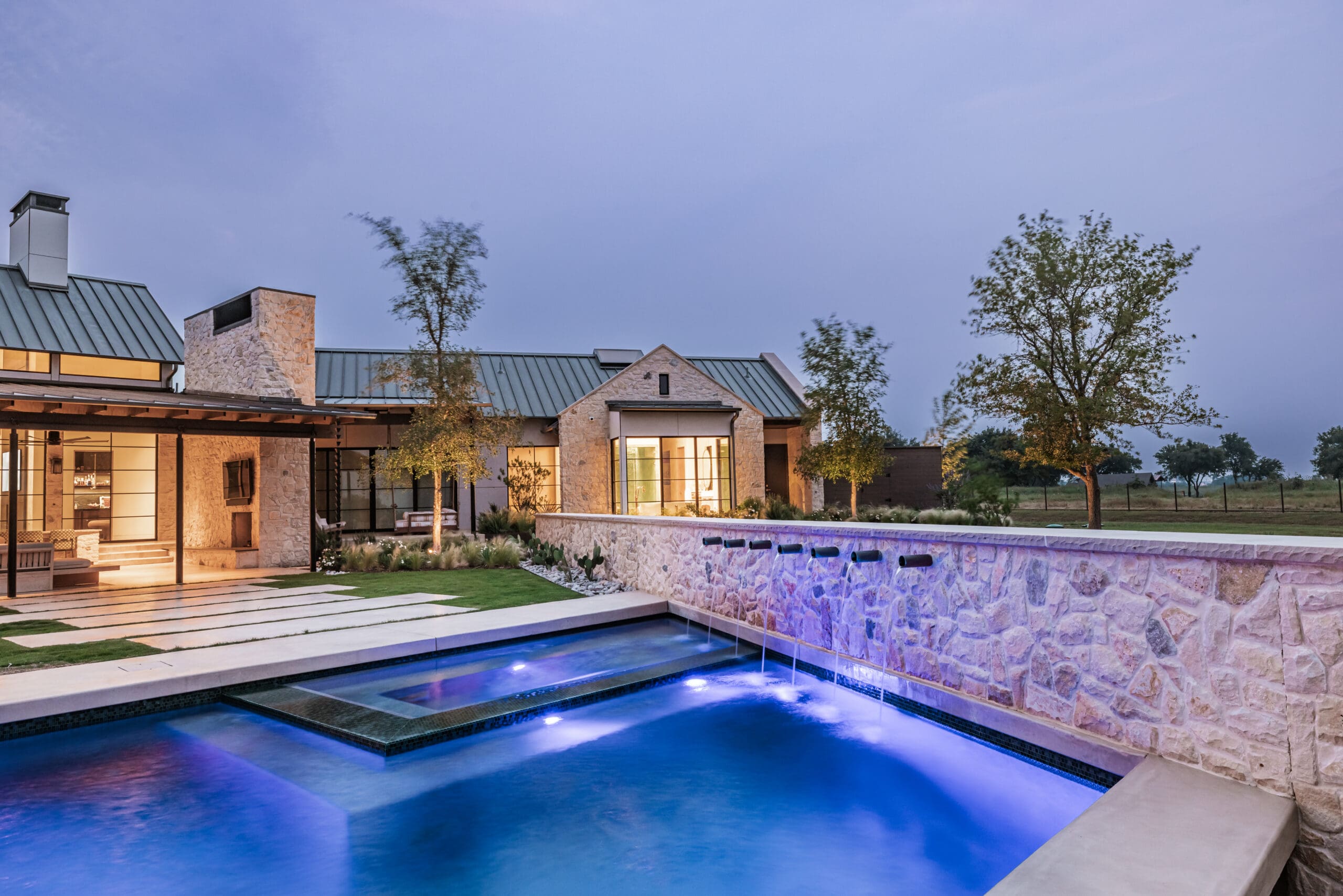 The property featured a significant slope from front to back, with the house, driveway, and landscaping directly in the path of natural water flow, requiring precise grading and drainage solutions to prevent water-related issues. Additionally, the backyard’s poor soil quality presented challenges for installing the pool on sloped terrain, necessitating specialized engineering techniques to ensure structural integrity. Finally, it was crucial to harmonize the design of the hardscape and softscape with the home’s architecture and the interior designer’s chosen color palette, creating a seamless indoor-outdoor aesthetic.